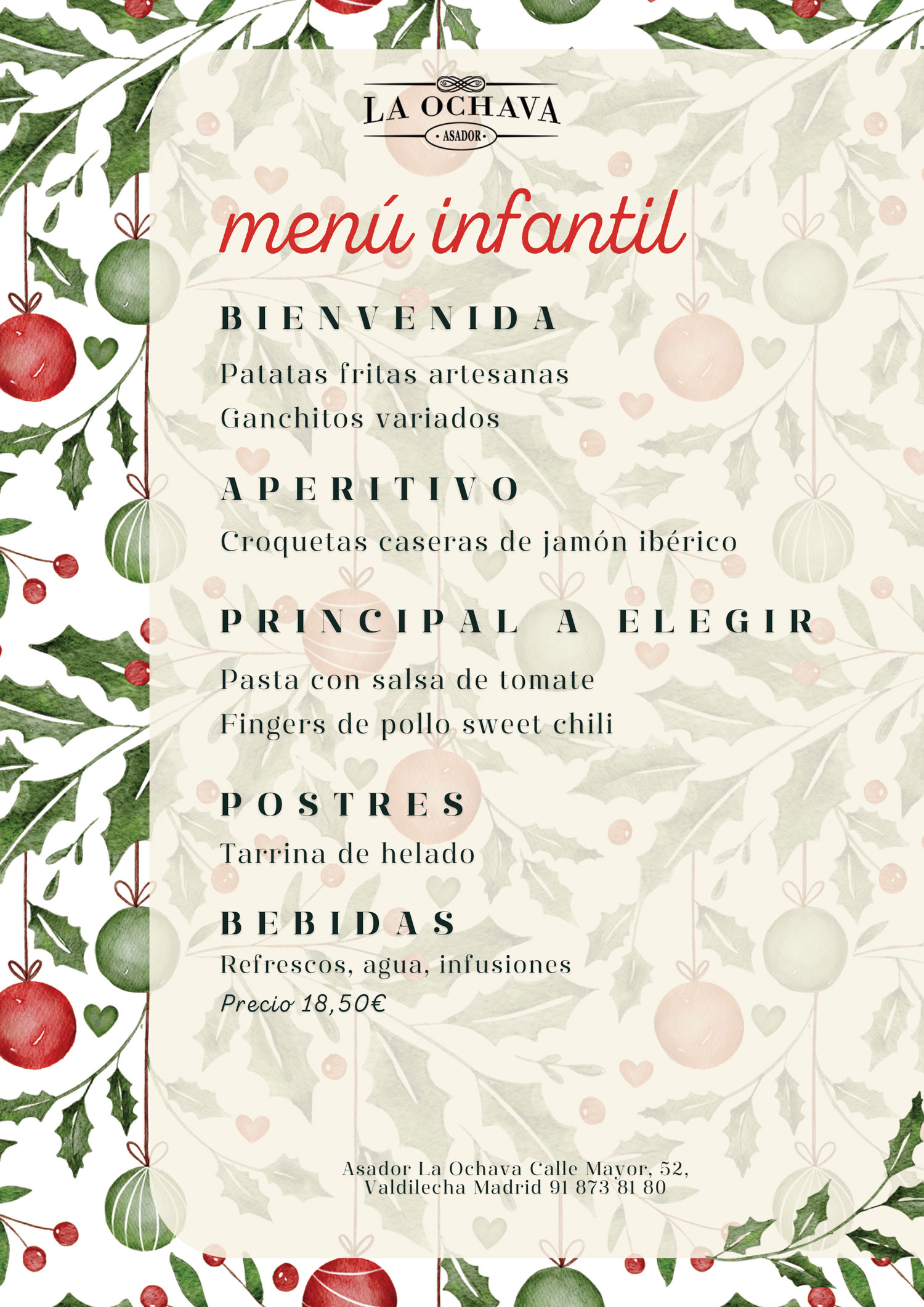 | Hamburguesa, o fingers, o pasta, o cinta de lomo Refresco, agua o batido de chocolate Tarrina de helado o yogurt |